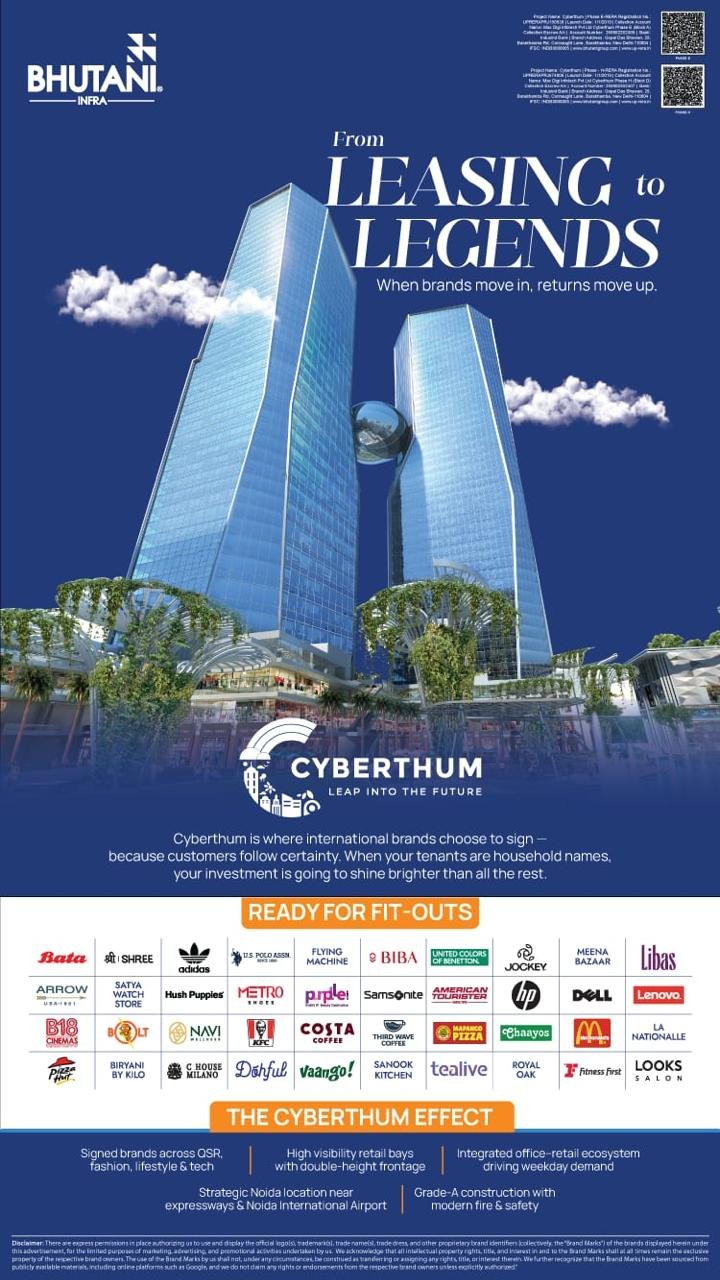 The food court, restaurant, and café spaces at Bhutani Cyberthum, Sector 140A Noida are emerging as a preferred choice for investors looking at high-footfall commercial assets. Located inside one of India’s most iconic commercial towers, Cyberthum’s F&B destination is designed to serve thousands of daily office-goers, co-working professionals, corporate teams, visitors, and nearby residential communities.